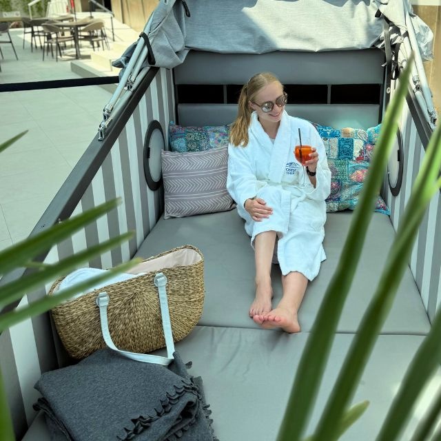 Genieße Deinen Tag zu zweit in einem für Euch reservierten Day Bed im Breeze mit atemberaubenden Blick auf das Meer.